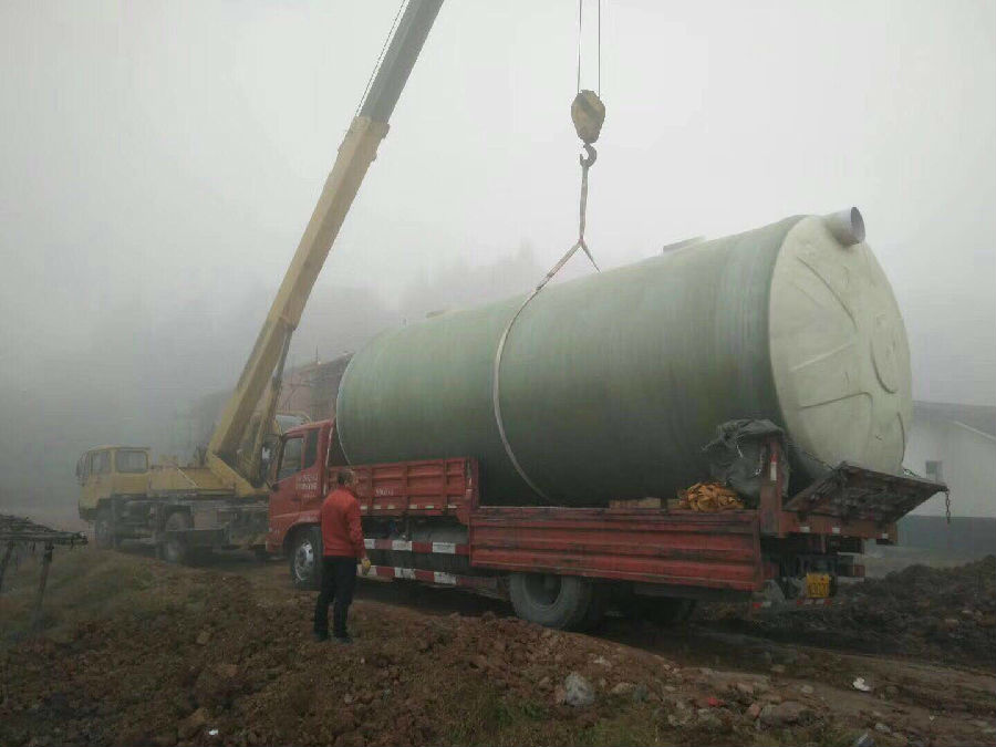 南充50立方成品玻璃鋼化糞池、吊裝、安裝、施工現(xiàn)場